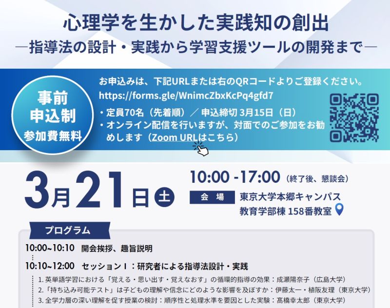 研究会:心理学を活かした実践知の創出@東大本郷に参加 更新日:2026年3月23日 公開日:2026年3月21日 学会(数学以外) 3月21日(土)の午前中は心理学系の研究会に参加のため、東京大学の本郷キャンパスに行ってきました。ミーハー心を爆発させて赤門を激写しようと意気込んだところ工事中だったことを着いてから思い出しました。(昨年の日本テスト学会 […] 続きを読む