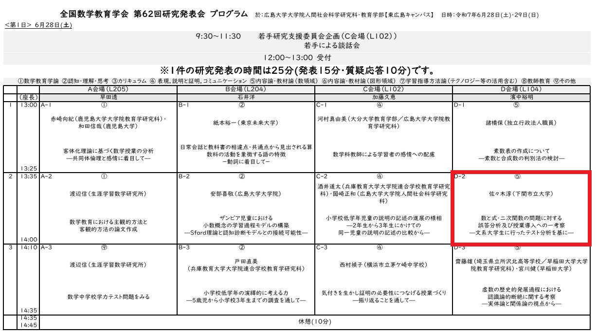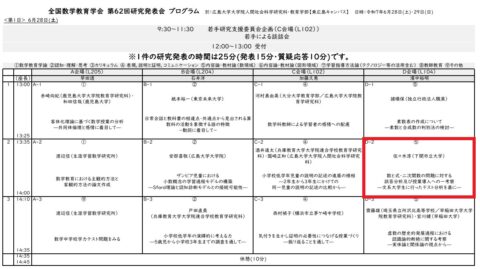 全国数学教育学会の第62回研究発表会(広島大学)で発表しました