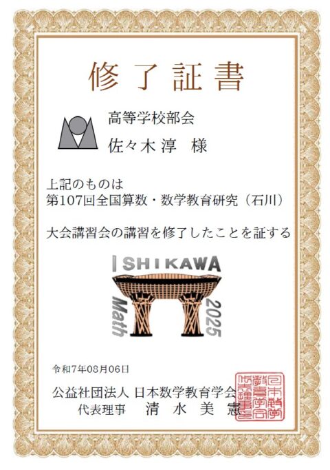 日本数学教育学会の全国算数・数学教育研究(石川大会)[@オンライン]が終わりました。(講習会にも参加しました)