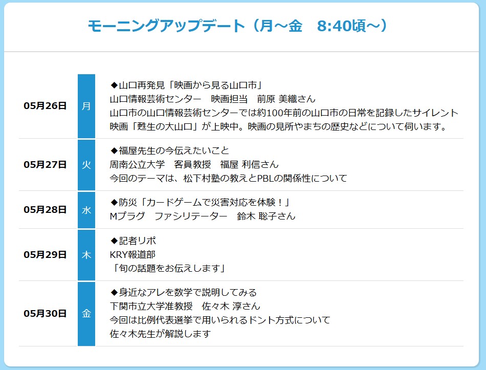8時40分〜50分は、数か月1回の第5金曜日に回ってくるKRYラジオ『KRY MORNING UP』の電話出演しました。