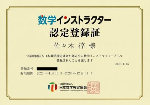 18.数学インストラクター【画像】←山口県2番目の取得者