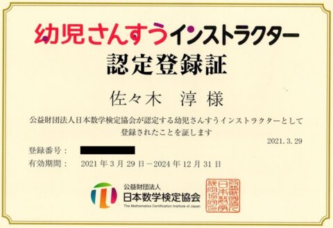 11.幼児さんすうインストラクター【画像】← 山口県初の取得者(幼児算数教育の専門家)